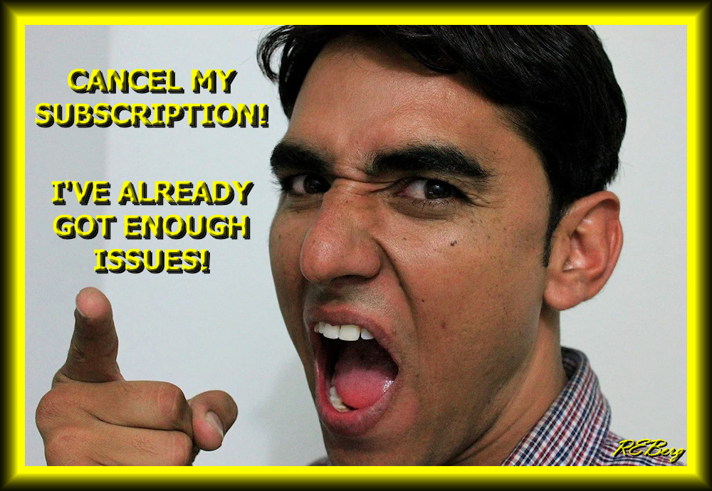 Enough, Already! Image May 14, 2023 R.E. Berg humor, joke, meme, Social Hostility already, cancel, enough, issues, subscription