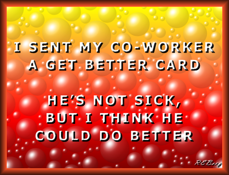 Card Disregard Image August 11, 2023 R.E. Berg humor, joke, meme, Occupational Oddities, Punishingly Punny, Social Hostility better, card, co-worker, sick