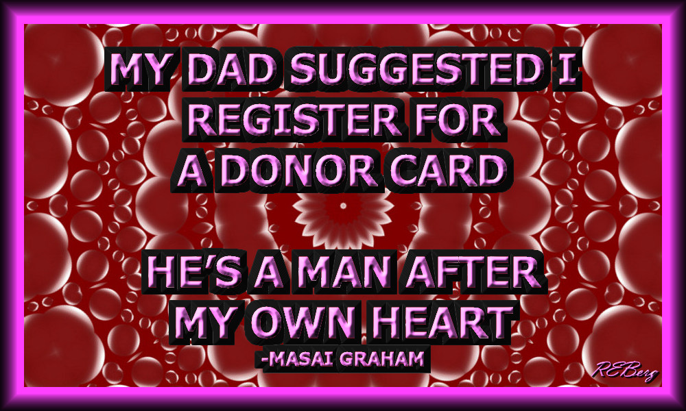 Organic Option Image October 14, 2023 R.E. Berg humor, joke, meme, Punishingly Punny Too, Quote Quotient card, dad, donor, heart, Masai Graham, register, suggestion