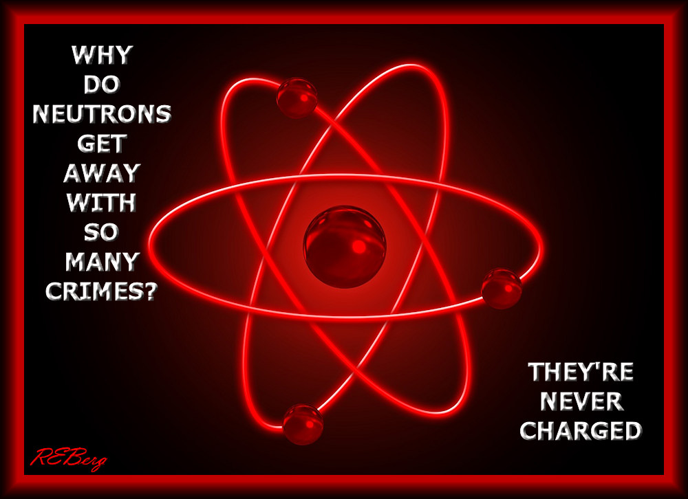 Case Dismissed Image May 26, 2023May 26, 2023 R.E. Berg humor, Ill Legalities, joke, meme, Punishingly Punny, Scientific Sensibility charged, crimes, get away, neutrons, never