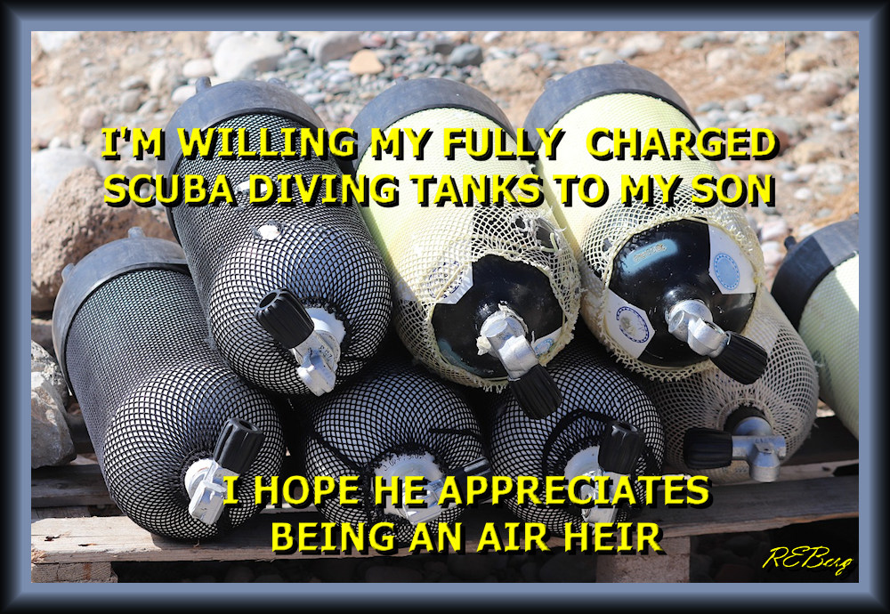 Many Tanks Image April 15, 2023April 15, 2023 R.E. Berg humor, joke, meme, Punishingly Punny air, appreciation, charged, diving, heir, hope, scuba, tanks, willing