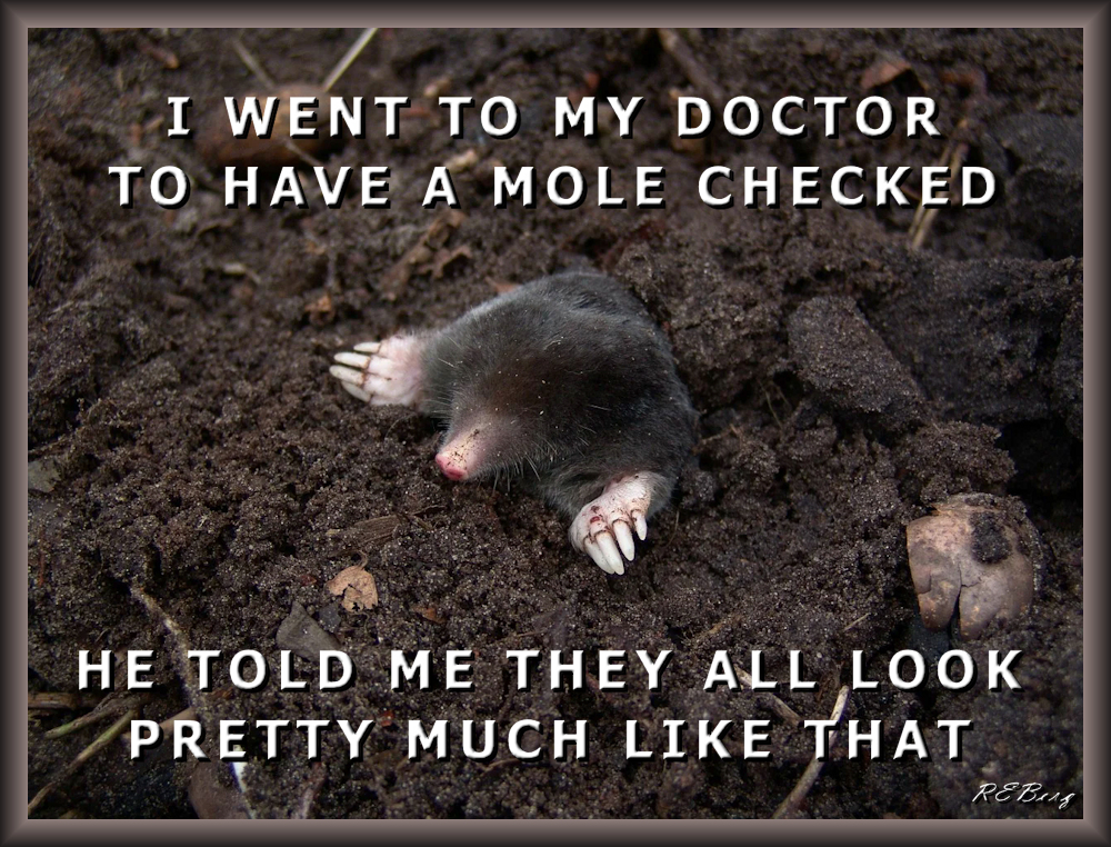 Predictable Diagnosis Image March 30, 2023 R.E. Berg Companion Critters, humor, joke, meme, Punishingly Punny Too, Scientific Sensibility check, doctor, mole, normal