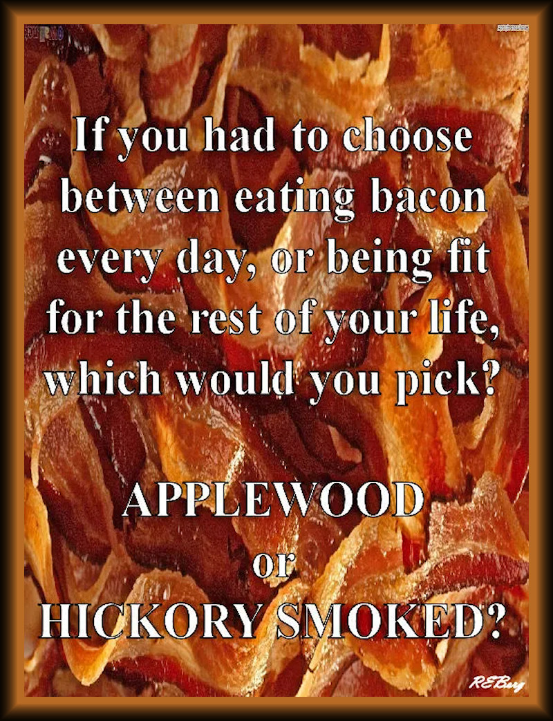 Choose Carefully Image August 27, 2023 R.E. Berg Culinary Curiosities, Deadly Living, humor, joke, meme applewood, bacon, choice, fitness, hickory smoked