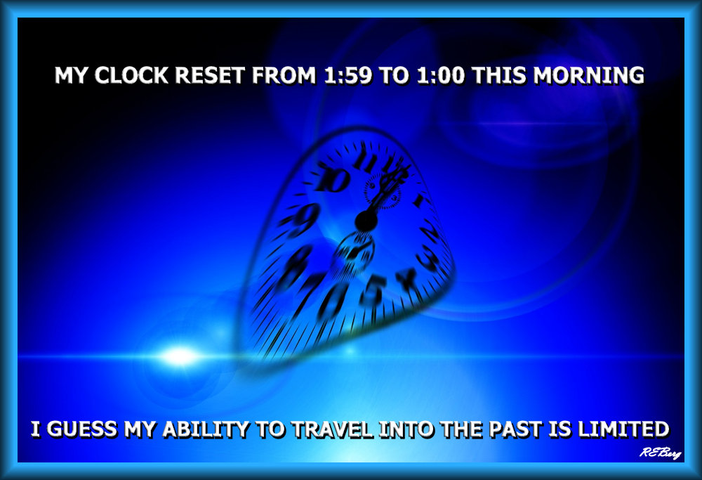 Only 60 Minutes? Image November 5, 2023November 5, 2023 R.E. Berg humor, joke, meme, Special Days, Travel Trauma clock, fall back, limited, one hour, past, reset, time