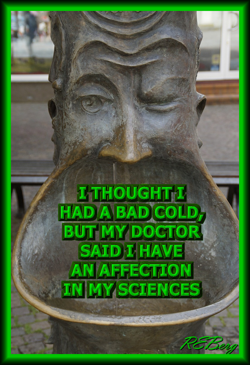 Hocus Mucous Image August 18, 2023 R.E. Berg humor, joke, meme, Punishingly Punny, Scientific Sensibility affection, bad, cold, doctor, infection, said, sciences, sinuses, thought