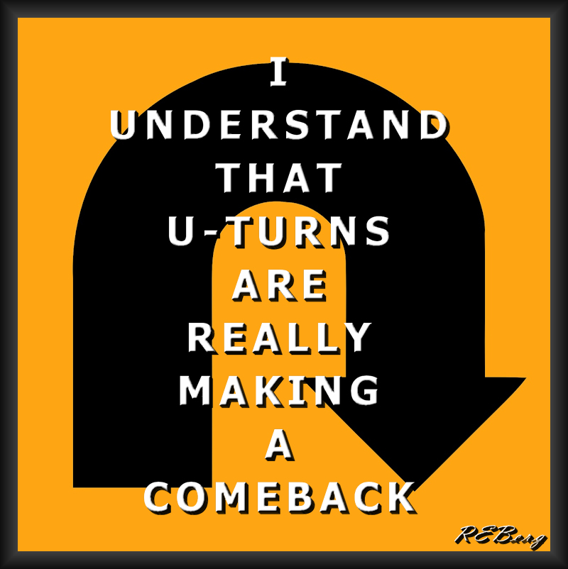 Coming Around Image September 11, 2023 R.E. Berg humor, joke, meme, Punishingly Punny, Travel Trauma comeback, making, really, u-turns, understand