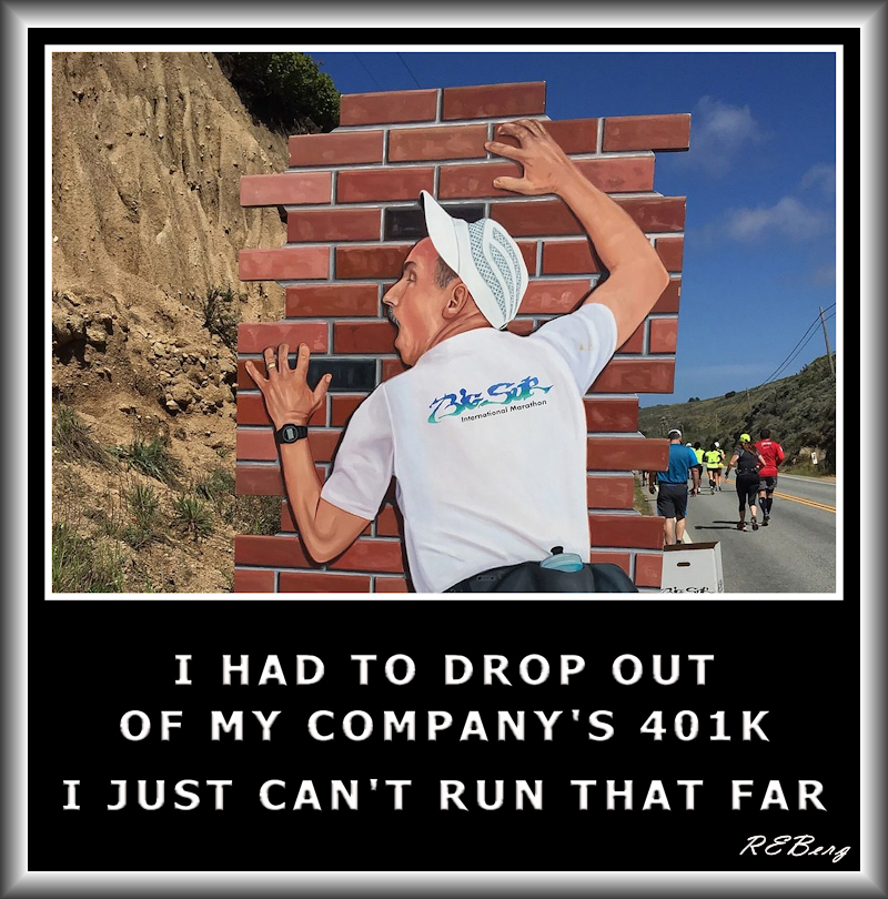 Non-Participant Image November 13, 2023November 13, 2023 R.E. Berg Fantasy Fitness, humor, Irrational Recreation, joke, meme, Punishingly Punny Too 401 kilometers, 401-K, company, distance, drop out, run