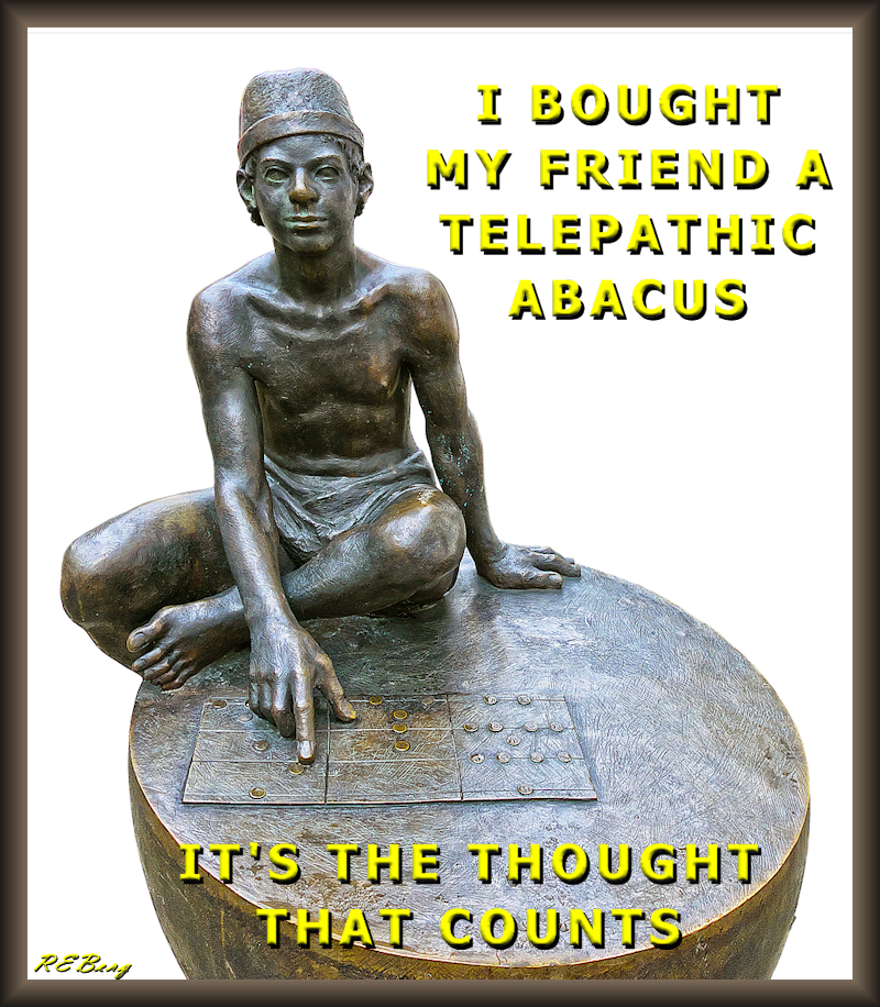 Accountability Ability Image March 25, 2023 R.E. Berg humor, joke, meme, Punishingly Punny, Rocky Relationships abacus, counts, friend, gift, telepathic, thought