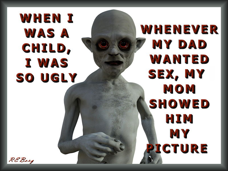 How Ugly Were You? Image October 2, 2023 R.E. Berg humor, Improper Parenting, joke, meme, Rocky Relationships child, dad, mom, picture, sex, showed, ugly