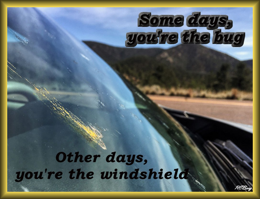 Be The Windshield Image August 8, 2023 R.E. Berg humor, joke, meme, Random Observations, That's Living bug, days, lose, win, windshield