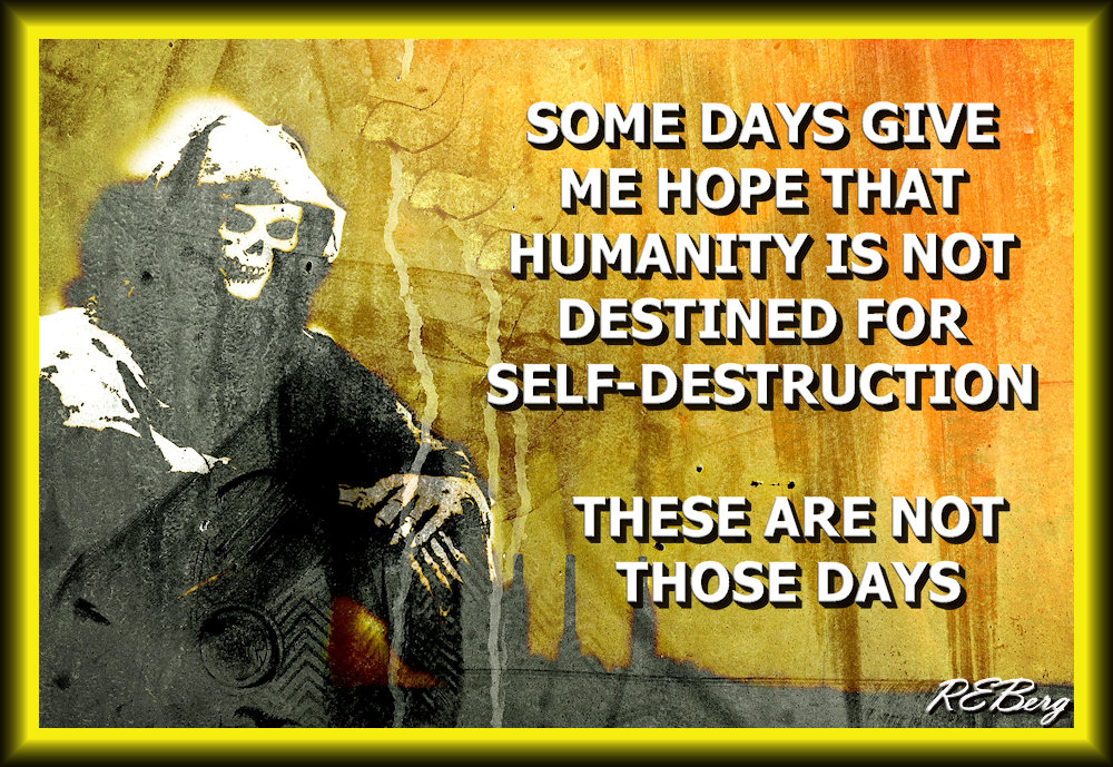 Extinction Distinction Image October 13, 2024 R.E. Berg Deadly Living, meme, Random Observations, Social Hostility days, destined, give, hope, humanity, self-destruction, some