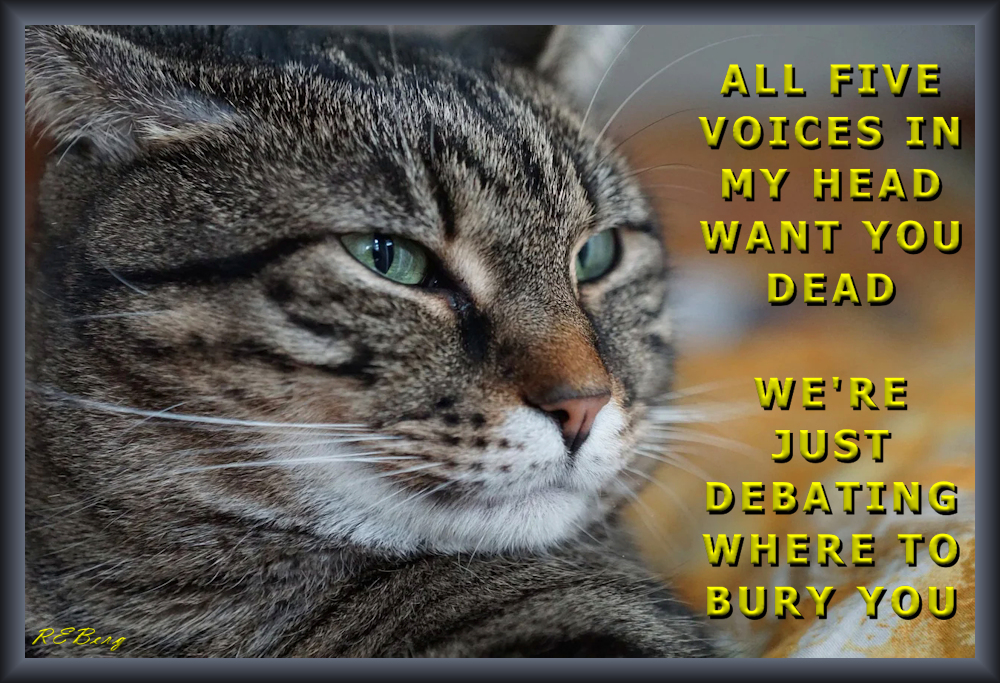 Awaiting Decision Image April 19, 2023April 19, 2023 R.E. Berg Companion Critters, Deadly Living, humor, joke, meme, Rocky Relationships, Social Hostility agreed, bury, cat, dead, debate, head, voices