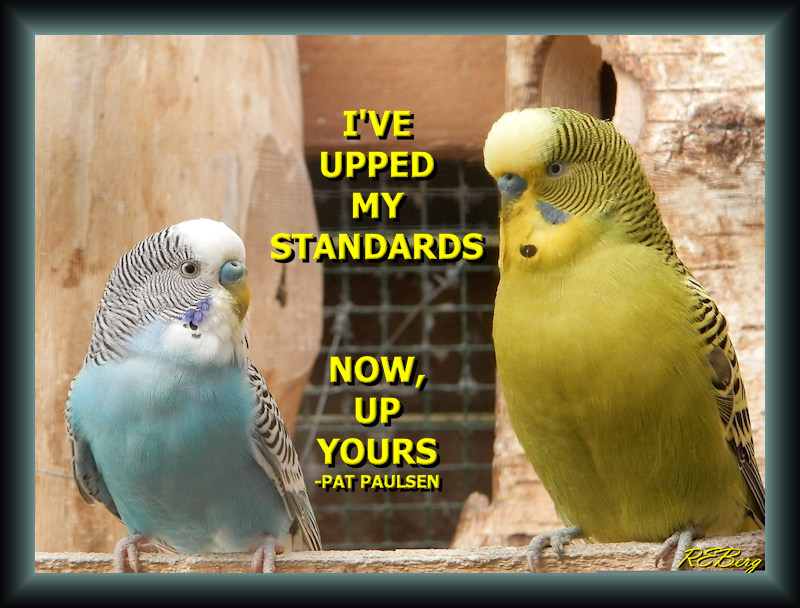 Raising The Ante Image November 18, 2023November 18, 2023 R.E. Berg Companion Critters, humor, joke, meme, Quote Quotient, Rocky Relationships, Social Hostility birds, challenge, demand, Pat Paulsen, standards, upped