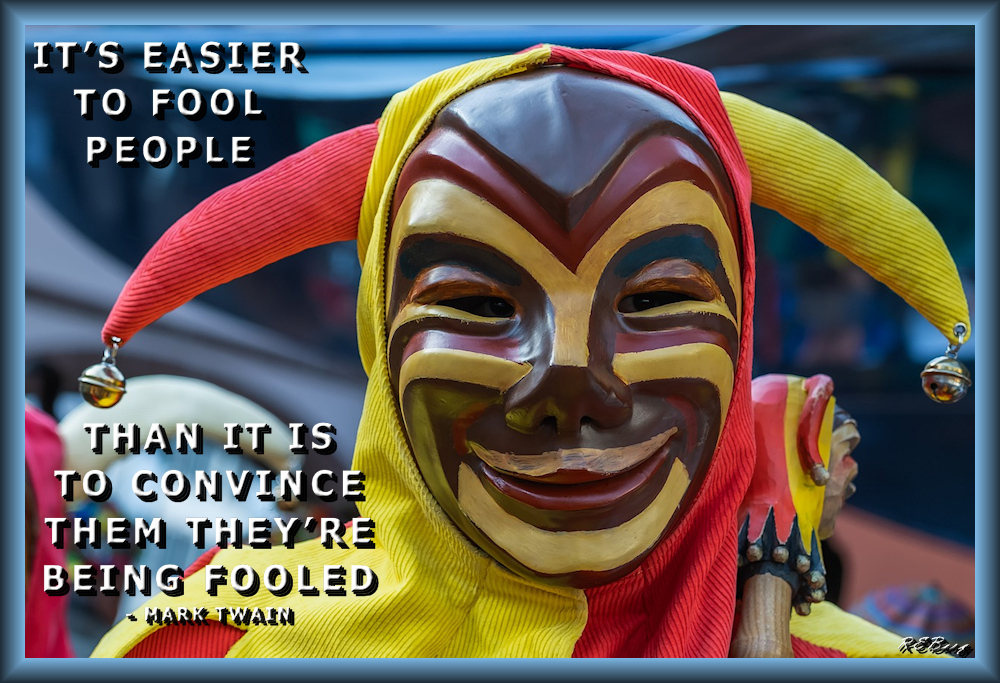 Fool Fodder Image August 3, 2023 R.E. Berg humor, joke, meme, Mental Gymnastics, Quote Quotient, Social Hostility convince, denial, fooled, Mark Twain, people