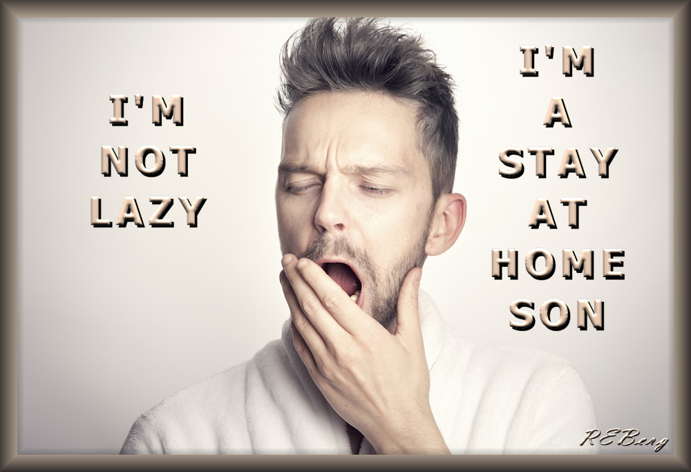 Domestic Ambition Image November 4, 2023 R.E. Berg humor, joke, meme, Mental Gymnastics, Occupational Oddities, Rocky Relationships denial, lazy, man, stay-at-home-son, yawn