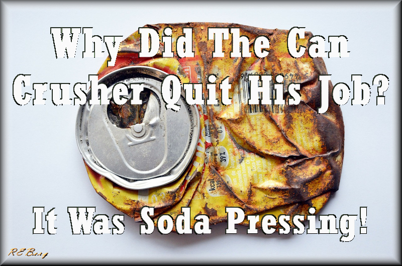 Uncanny Change Image May 19, 2023 R.E. Berg humor, joke, meme, Occupational Oddities, Punishingly Punny Too can, crusher, depressing, job, soda