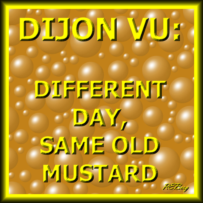 Consistent Condiment Image May 13, 2023 R.E. Berg Culinary Curiosities, humor, joke, meme, Punishingly Punny day, deja vu, different, Dijon, mustard, old, same