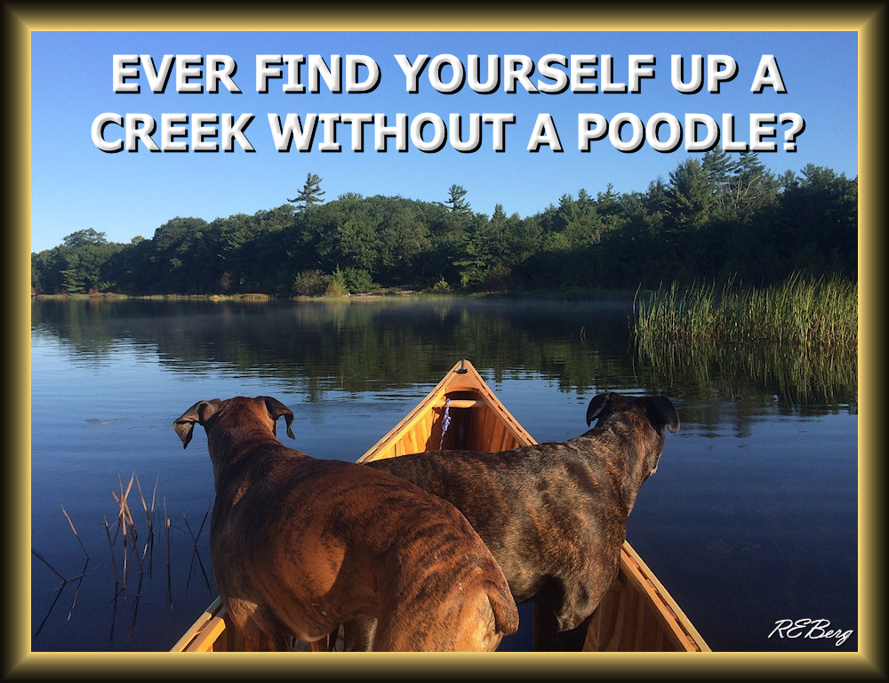 Current Affair Image October 22, 2023 R.E. Berg Companion Critters, humor, Irrational Recreation, joke, meme, Punishingly Punny canoe, creek, dog, paddle, poodle