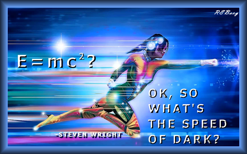 Unenlightened Velocity Image December 21, 2023 R.E. Berg humor, joke, meme, Quote Quotient, Scientific Sensibility dark, energy, light, mass, speed, Steven Wright