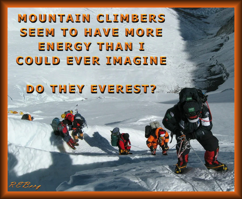 Power Play Image July 7, 2023 R.E. Berg humor, Irrational Recreation, joke, meme, Punishingly Punny Too climbers, energy, ever rest, Everest, mountain