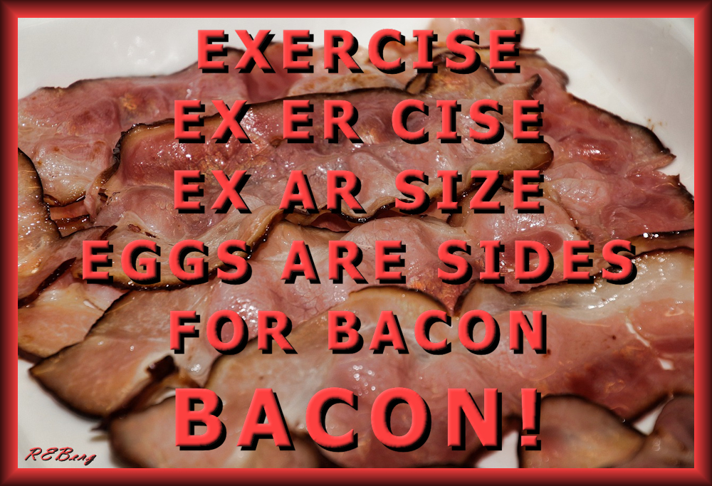 Baconization Image December 1, 2023 R.E. Berg Culinary Curiosities, humor, Irrational Recreation, joke, meme, Punishingly Punny bacon, eggs, exercise, sides