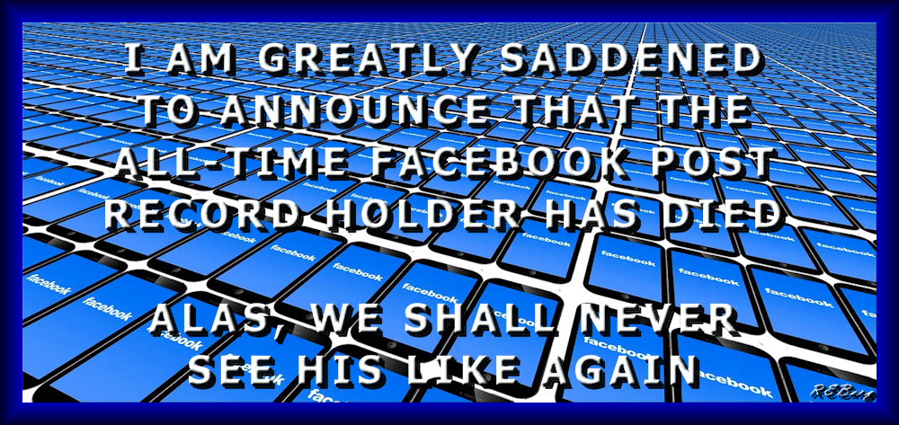 Faceoff Image August 21, 2023 R.E. Berg humor, joke, Lively Dying, meme, Punishingly Punny announcement, died, Facebook, likes, poster, sad