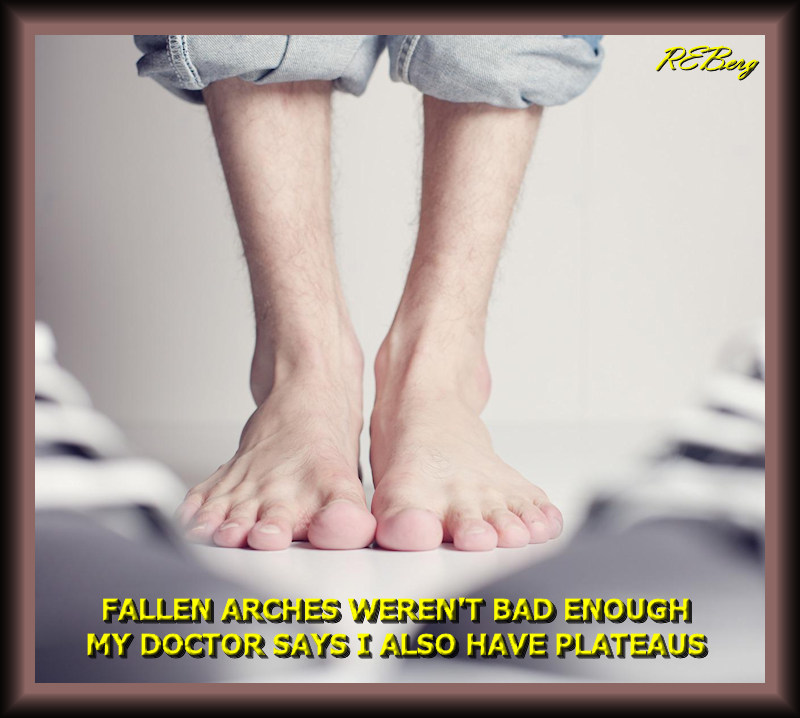 Flat Out Flattery Image July 9, 2023 R.E. Berg humor, joke, meme, Punishingly Punny arches, bad, doctor, fallen, flat toes, plateaus
