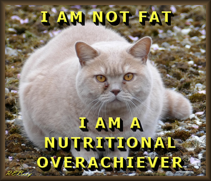 Famine-Ready Feline Image October 20, 2023 R.E. Berg Companion Critters, Fantasy Fitness, humor, joke, meme cat, fat, nutritional, overachiever