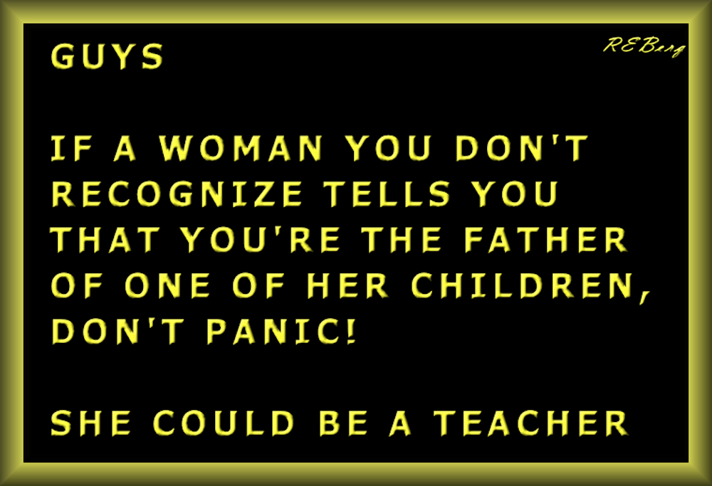 Alternate Explanation Image September 21, 2023 R.E. Berg Education Sensation, humor, joke, meme, Random Observations, Rocky Relationships child, father, guys, panic, teacher, woman