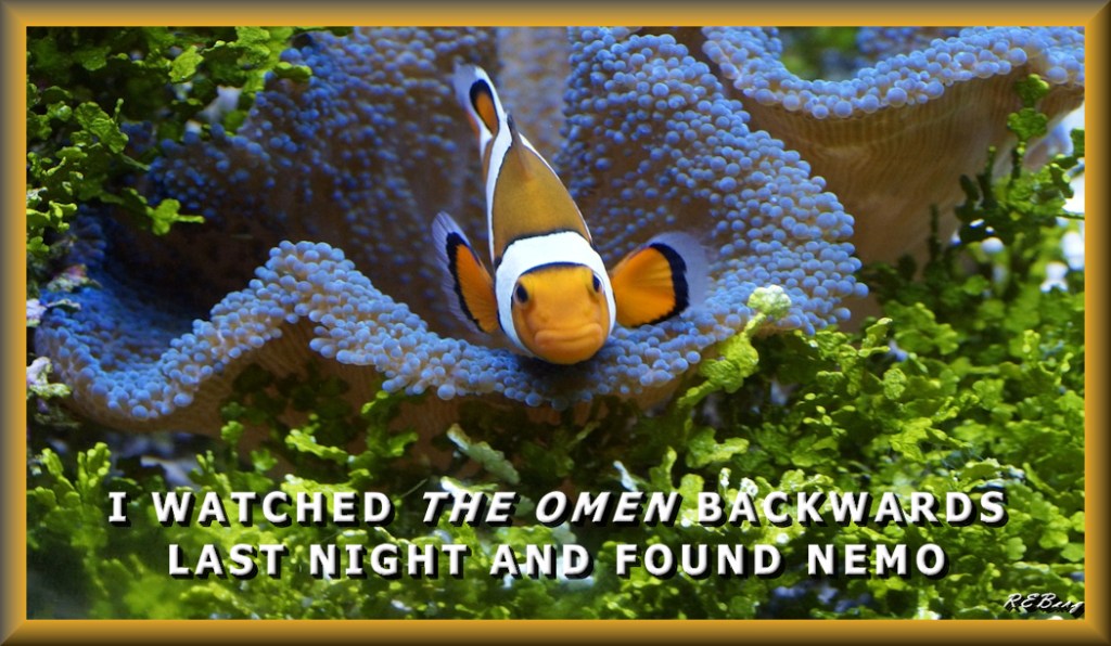Reversal Of Fortune Image September 14, 2024 R.E. Berg humor, joke, Marginal Entertainment, meme, Punishingly Punny Too backwards, clown, fish, found, movie, Nemo, omen, watched