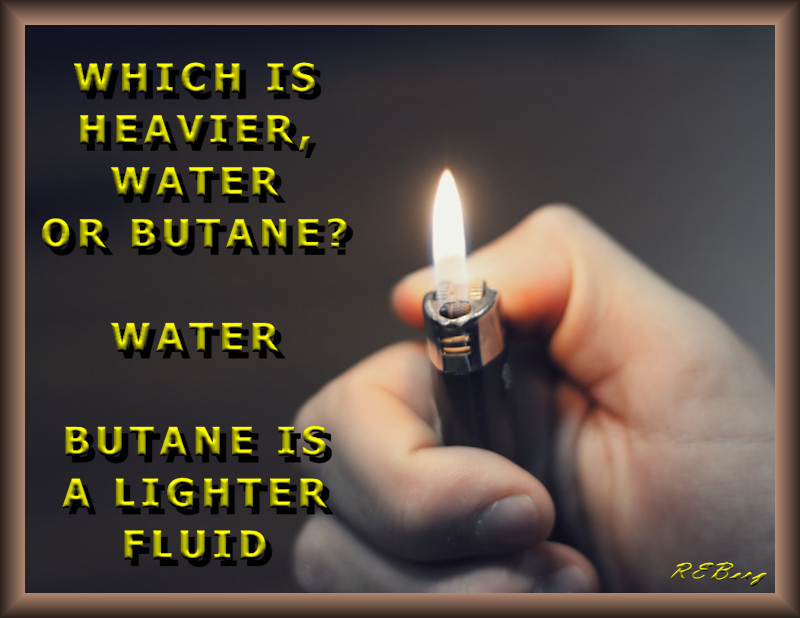 Weighing In Image January 31, 2023January 31, 2023 R.E. Berg humor, joke, meme, Punishingly Punny Too butane, fluid, heavier, lighter, water