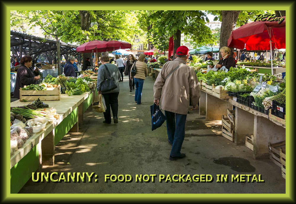 Better Bottled Image August 10, 2023 R.E. Berg Culinary Curiosities, humor, joke, meme, Punishingly Punny canned, farmers, food, market, metal, packaged, uncanny
