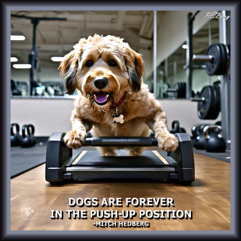 Forced Fitness Image November 18, 2024November 18, 2024 R.E. Berg Companion Critters, Fantasy Fitness, humor, joke, meme, Quote Quotient, Random Observations dogs, forever, Mitch Hedberg, pushup position