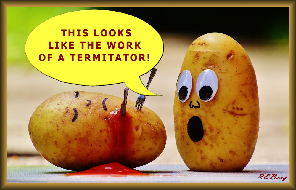 He’s Done Image October 19, 2023October 19, 2023 R.E. Berg Culinary Curiosities, humor, joke, meme, Punishingly Punny blood, catsup, crime, fork, ketchup, murder, potato, tater, tator, terminator, termitator
