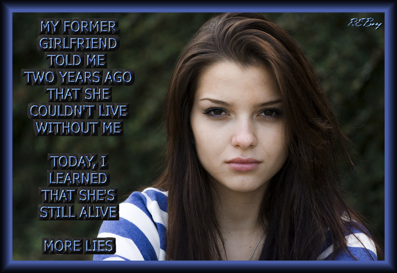 Not Surprised Image March 2, 2023 R.E. Berg humor, joke, meme, Punishingly Punny Too, Rocky Relationships, Social Hostility ago, former, girlfriend, lies, live, more, still, two, years