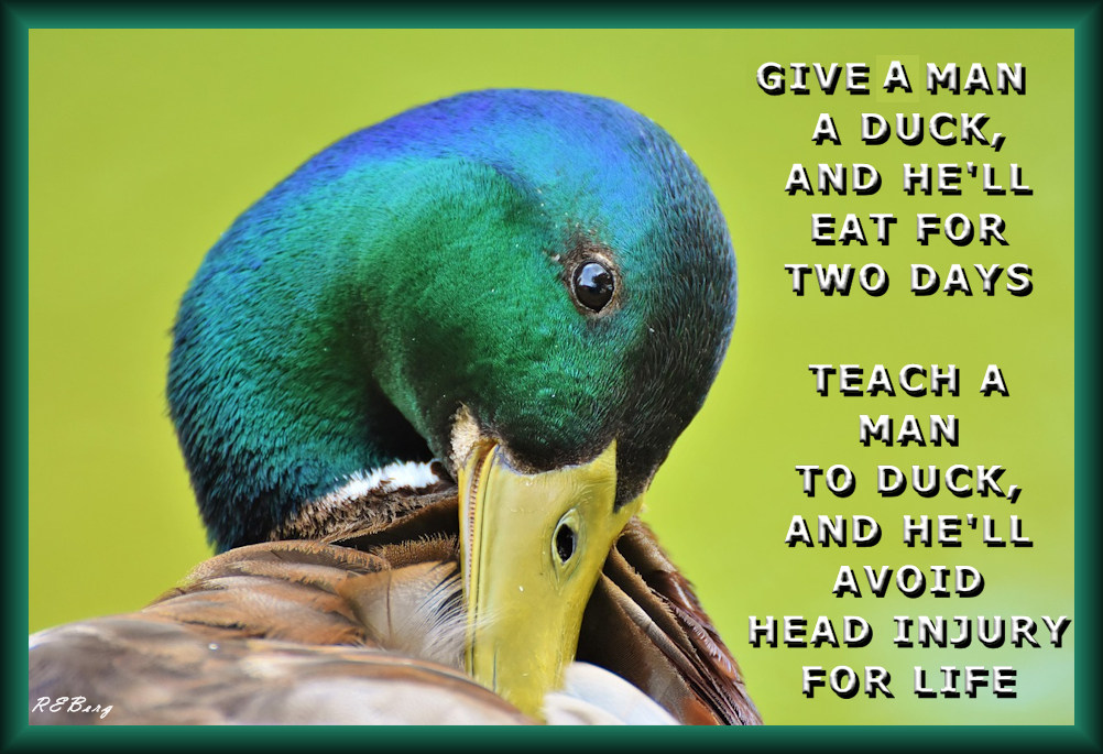 The Art Of Ducking Image December 21, 2023 R.E. Berg humor, joke, meme, Punishingly Punny, Random Observations day, duck, eat, give, head, injury, life, man, teach