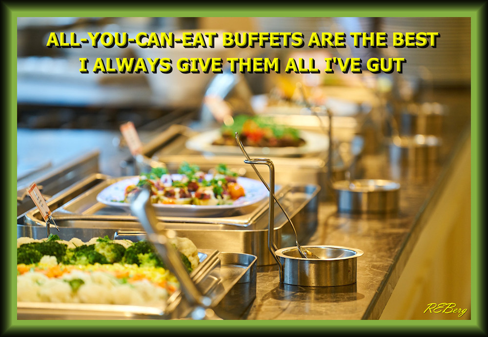 Full Filling Image January 11, 2024 R.E. Berg Culinary Curiosities, humor, joke, meme, Punishingly Punny all, all-you-can-eat, always, buffets, give, got, gut