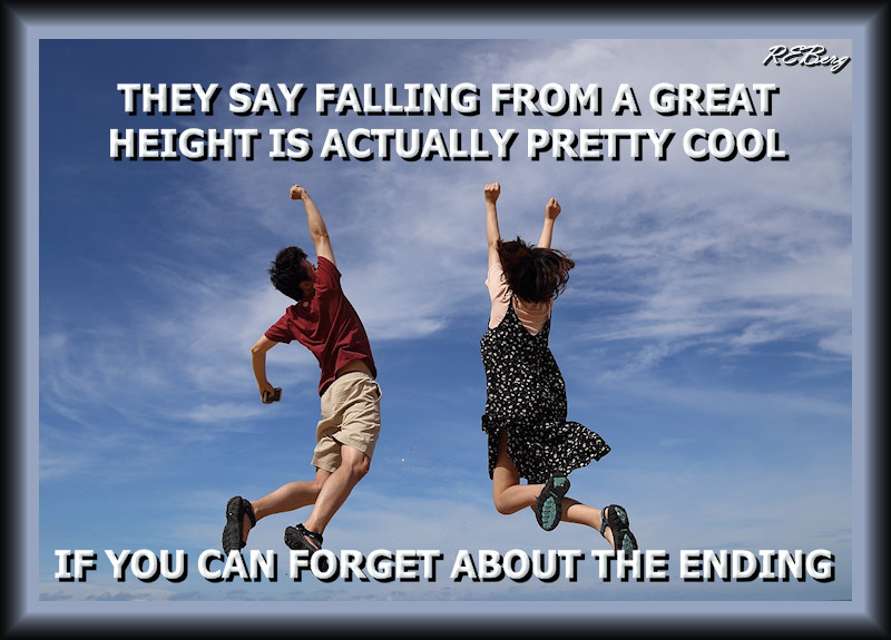 Staying In The Moment Image December 11, 2023 R.E. Berg Deadly Living, humor, Irrational Recreation, joke, Lively Dying, meme, Mental Gymnastics, Random Observations actually, cool, ending, falling, forget, great, heights, pretty, say, they