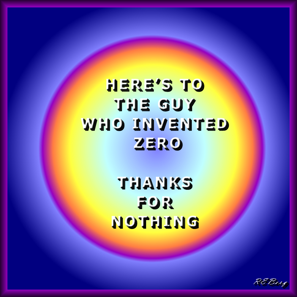 Zero Summary Image March 2, 2023 R.E. Berg humor, joke, meme, Methodic Mathematics, Punishingly Punny Too guy, invention, nothing, recognition, thanks, toast, tribute, zero
