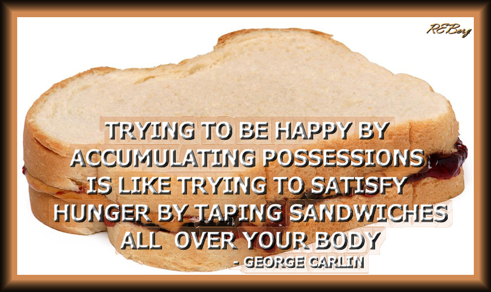 High-Carb Diet Image June 5, 2023 R.E. Berg Culinary Curiosities, humor, joke, meme, Quote Quotient, Random Observations accumulating, body, George Carlin, happy, possessions, sandwiches, satisfaction, taping