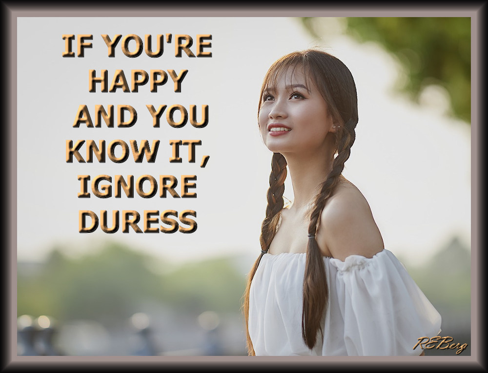 No Worries Image July 2, 2023 R.E. Berg humor, joke, meme, Mental Gymnastics, Punishingly Punny Too aware, braids, duress, emotions, happy, ignore, smile, state-of-mind, the rest, woman