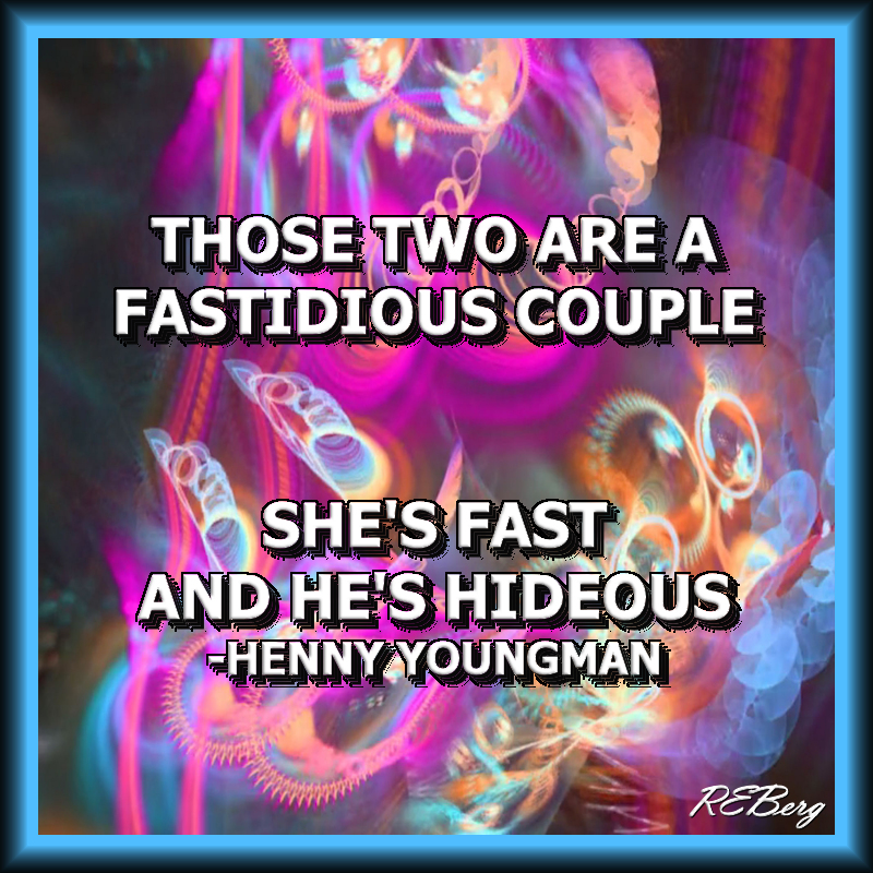 Dream Team Image August 28, 2024 R.E. Berg humor, joke, meme, Punishingly Punny, Quote Quotient, Rocky Relationships couple, fast, fastidious, Henny Youngman, hideous