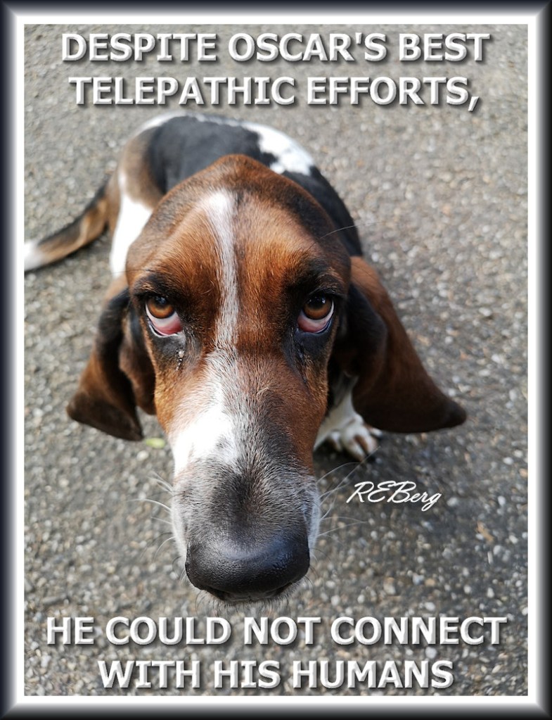 One-Way Communiqué Image July 3, 2025 R.E. Berg Companion Critters, humor, Imaginary Reality, Improper Parenting, joke, meme, Mental Gymnastics, Rocky Relationships best telepathic efforts, connect, could not, despite, Humans