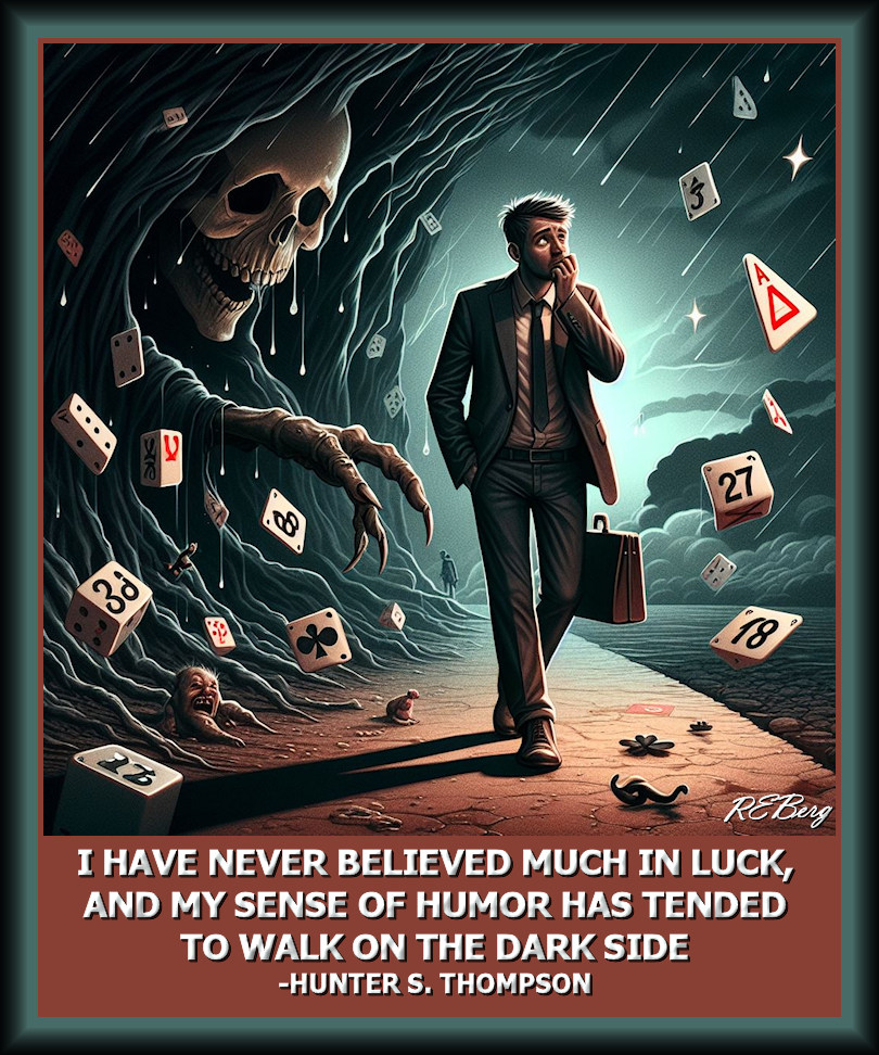 Walking The Line Image May 20, 2024 R.E. Berg humor, joke, meme, Mental Gymnastics, Quote Quotient, Random Observations believed, dark, humor, Hunter S. Thompson, luck, much, never, sense, side, tended, walk
