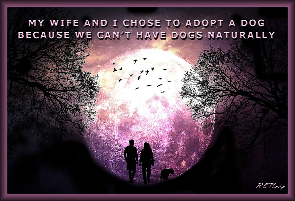 Fur Child Adoption Image November 20, 2023 R.E. Berg Companion Critters, humor, joke, meme, Punishingly Punny, Scientific Sensibility adopt, dog, humor, joke, natural birth