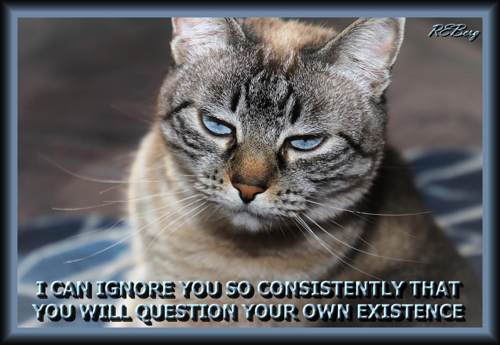 Can You Mimic A Can Opener? Image May 24, 2023 R.E. Berg Companion Critters, humor, joke, meme, Social Hostility cat, consistently, existence, ignore, question