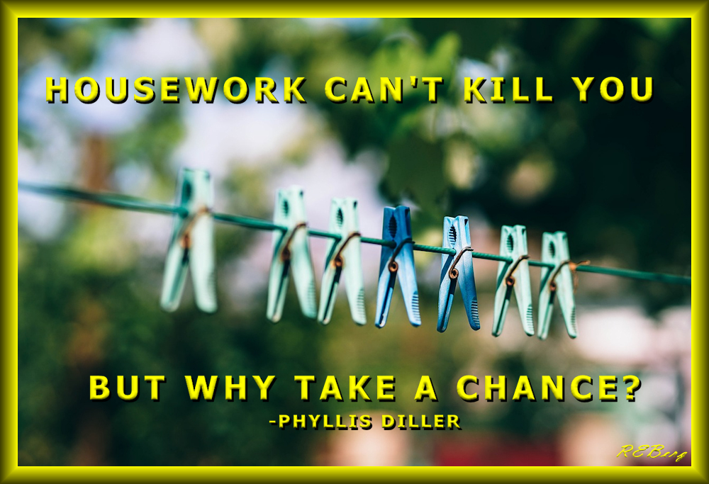 Domestic Caution Image December 3, 2023 R.E. Berg Deadly Living, humor, joke, meme, Occupational Oddities, Quote Quotient, Random Observations, That's Living clothesline, clothespins, deadly housework, erring on the side of caution, kill, laundry, Phyllis Diller