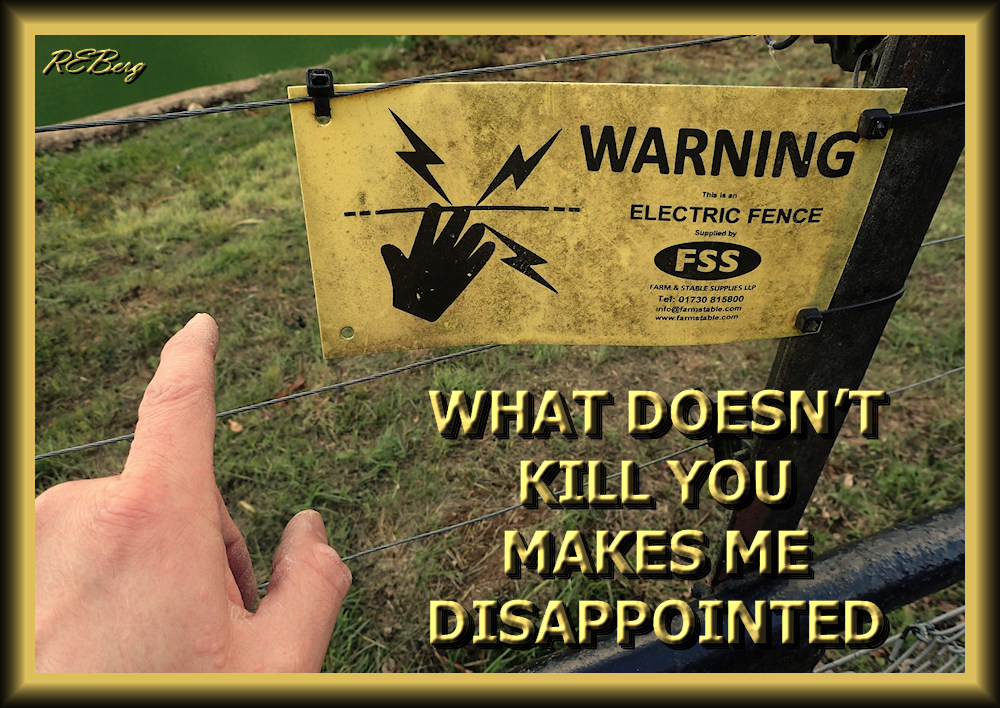 Challenging Warning Image May 22, 2023 R.E. Berg humor, joke, meme, Social Hostility disappointed, electrocution, kill, makes