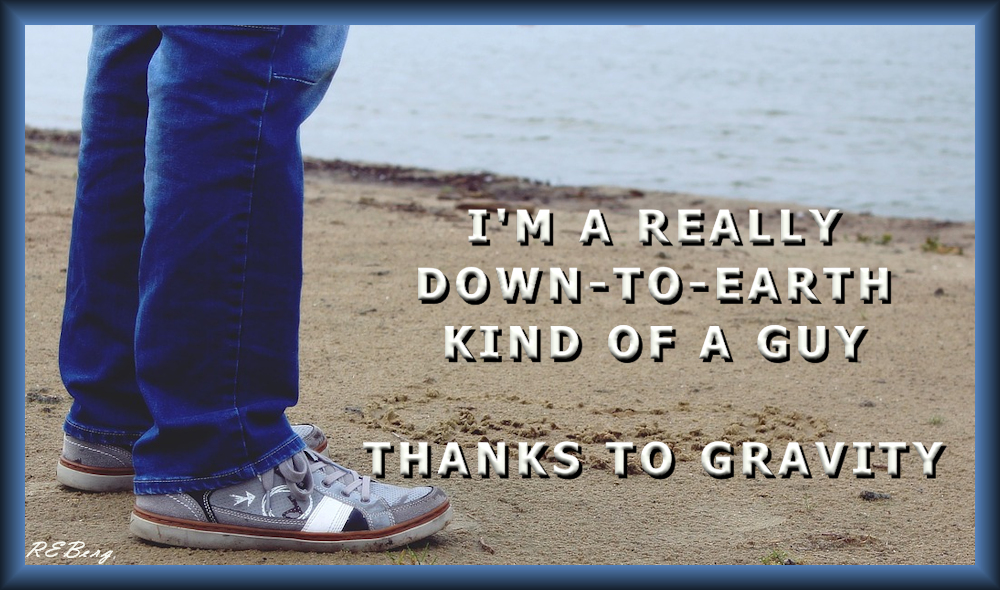 Outstanding Citizen Image February 24, 2023 R.E. Berg humor, joke, meme, Punishingly Punny Too, Scientific Sensibility down-to-earth, gravity, guy, kind, sand, thanks, water