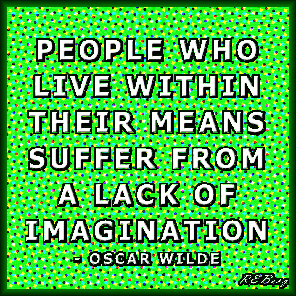 Persons Of Means Image November 4, 2023 R.E. Berg Fanciful Finances, humor, joke, meme, Quote Quotient, That's Living imagination, lack, living, Oscar Wilde, people, suffer, within means